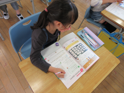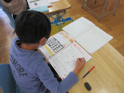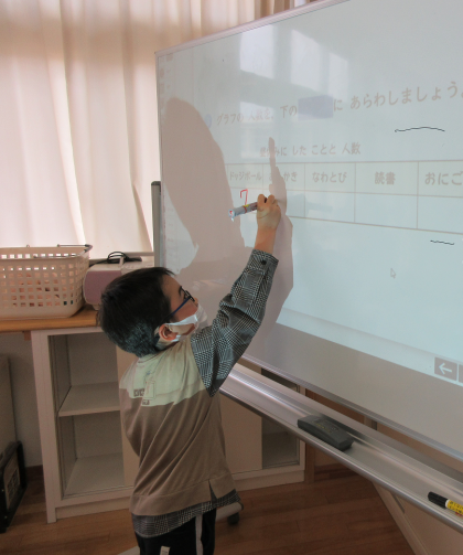 算数科では、「グラフ」と「ひょう」を使ってわかりやすく表す学習をしました。子供たちはグラフと表をつくり、わかりやすく表すよさを感じていたようでした。