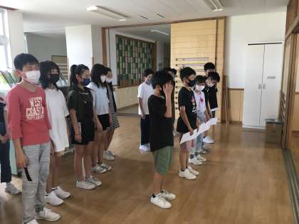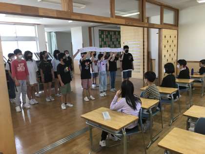 学校のスローガンを5年生に伝えました。最高学年としてよりよい水橋中部小学校を築こうと全力で取り組んでいます。
