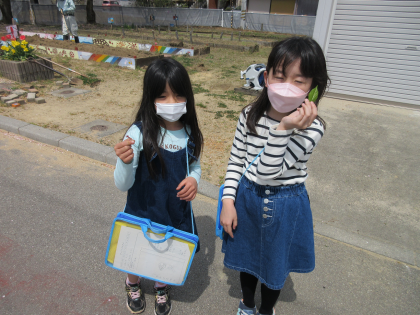 今日は、校舎の外に出て春らしいものを探しに行きました。花や生き物を見付け、その様子をスケッチしました。
