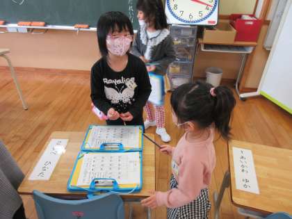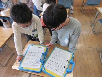 今日の生活科は「1花なかよし!大作戦パート2」を行いました。今日は、お友達同士で自己紹介をし合い、自分のカードに印をつけてもらう活動を行いました。今日は第1回目でしたが、みんなルールを理解して、楽しく交流を深めました。「来週の生活科で続きをするのが楽しみ!」という声も聞かれました。