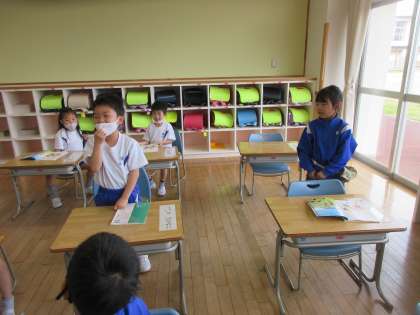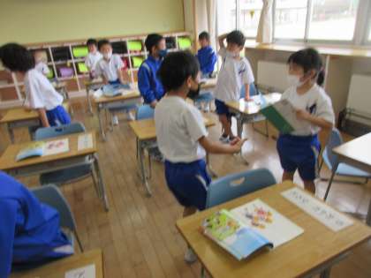 今日は、隣の友達とペアになって、一文交代で音読練習をしました。練習の後、それぞれのペアで元気よく音読を発表しました。