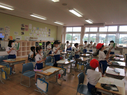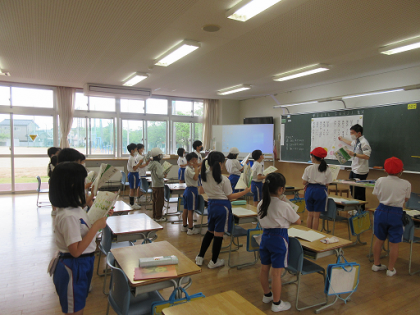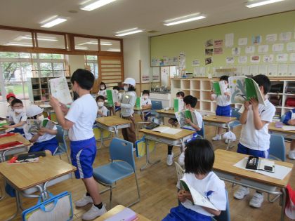 今日は「はなが さいた」の音読をしました。「一人読み」「みんな読み」「こうたい読み」「たけのこ読み」といった様々な方法で音読しました。どんどん音読が上手になっています。
