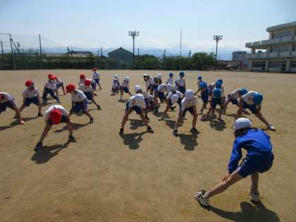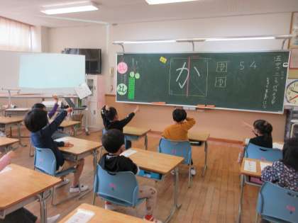 いよいよ5月。1年生は、運動会練習に、ひらがなの練習にと、がんばっています。