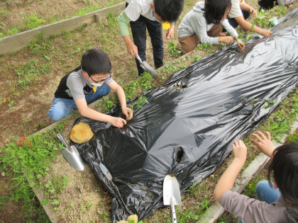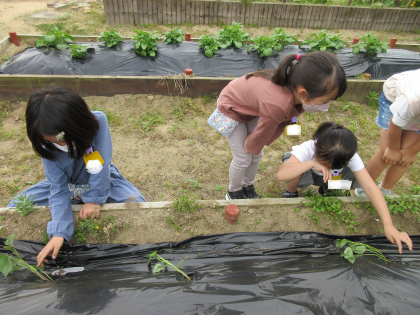 生活科では野菜を育てます。今日は大成っ子ガーデンでさつまいもの苗を植えました。今から成長がとても楽しみです。