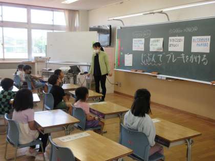 今日、運動会直後ということもあって、全校で「命と友達」の大切さを考える時間をとりました。通学路を守ること、友達の家で遊ぶときのマナー、相手の気持ちを考え友達と仲良くする大切さについて考えました。