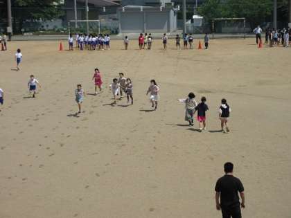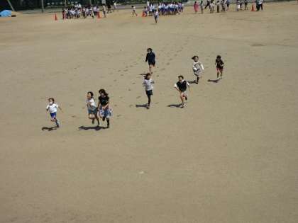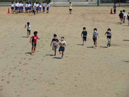 天気がよかったので、トレーニングタイムは外で50m走をしました。負けず嫌いのみんなは、「一位になりたい!」と、必死に走っていました。