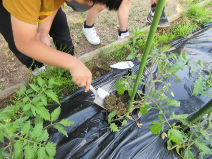 大成っ子ガーデンには、いろいろな野菜を植えています。今日様子を見てみると、順調に育っていました。ただ、葉っぱに虫がついている野菜も見付けました。対策を考える必要があるようです。