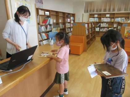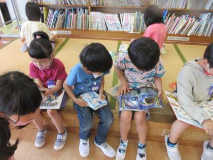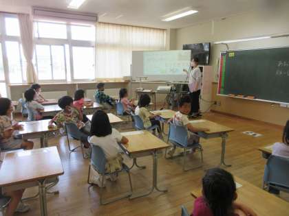今日は、図書館司書の先生をクラスにお招きし、図書室の使い方について話を聞きました。そのあと、図書室に行って、実際に本を借りました。友達同士で借りた本を見合って楽しみました。
