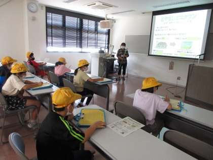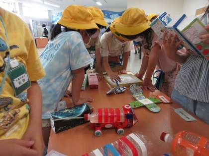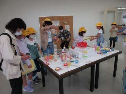 今日は待ちに待った校外学習でした。最初に行ったのは「富山市エコタウン」です。リサイクルについてのお話を聞いたり、リサイクルおもちゃで遊んだり、実際のリサイクル工場を見学したりしました。