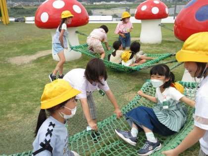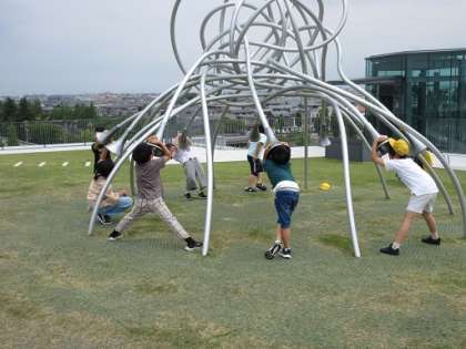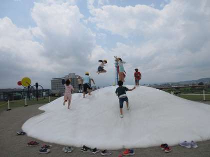 みんなが一番楽しみにしていた富山県美術館の「オノマトペの屋上」では、いろいろな遊具で思い切り遊びました。