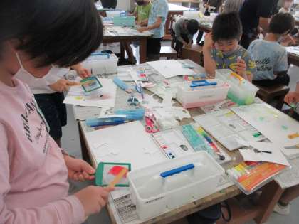 水彩画の技法、「にじみ」や「型抜き」「ブラッシング」を使って表しました。とても楽しくできました。