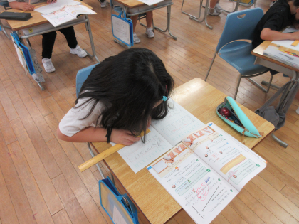 算数科では長さの単位を学習しています。今日は竹ものさしを使って正確な直線を引く練習をしました。