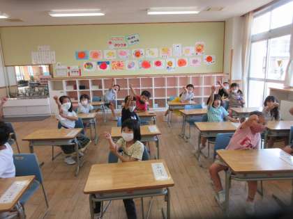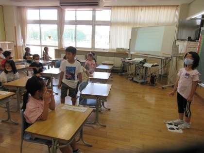 帰りの会では「よし!よし!タイム」という1日の中でがんばった活動や楽しかったことを発表する時間があります。今日は、道徳「ちゃんとのたつじん」と音楽の「かたつむり」の歌とジェンカが心に残ったという発言がありました。「道徳よし!」「音楽よし!」ですね。