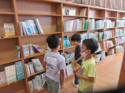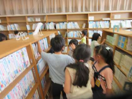 帰りの会までの時間を利用して、図書室に本を借り換えに行きました。みんな本を探すのに夢中になっていました。
