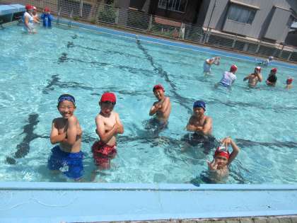 今日はプール開きがありました。気温が高かったので、とても気持ちのよいプールとなりました。