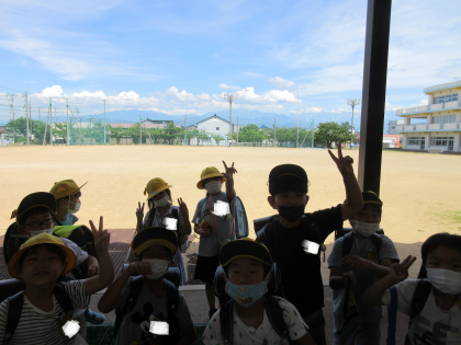 今日はとてもいい天気でした。立山もくっきり見えるような青空であり、空の下で子供たちと写真を撮りました。