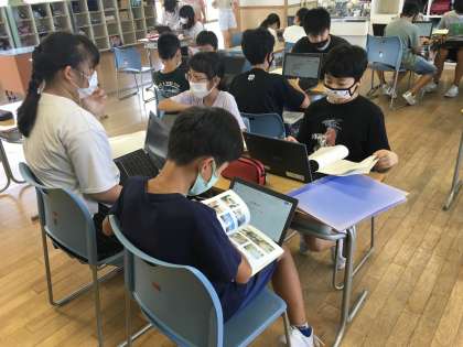 総合の時間に水橋中部小学校の歴史について調べています。過去の学校の出来事などに触れ、150周年という重みを感じています。