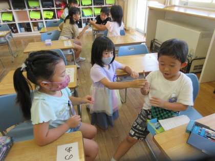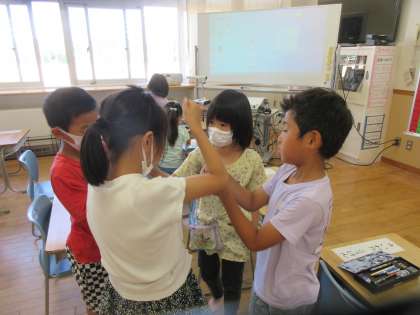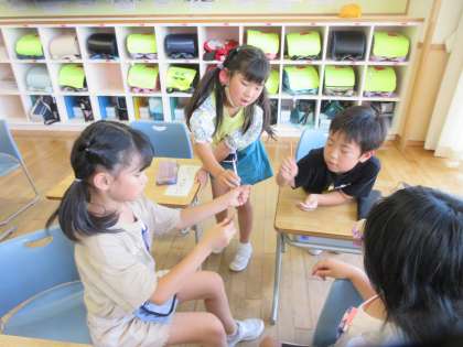 算数では、「長さくらべ」の勉強をしました。鉛筆をどのように比べたかを発表し合いました。