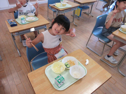 今日は大成っ子ガーデンで育てたきゅうりを実食しました。みんなが丁寧にお世話してできたきゅうりはおいしかったようです。