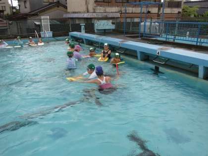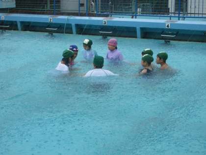 雨が降る中ではありましたが、水泳教室が行われました。先生に教えてもらい、できなかったことができるようになった子もいました。みんな、とてもいい顔で頑張っていました。