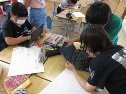 来週行われる、水橋西部小学校の4年生さんとの交流会に向けて、準備をしています。どんなふうに4年花組の紹介をすればよいか一生懸命考えていました。交流会をとても楽しみにしています。