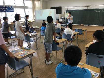 英語の学習で水橋中学校の先生が来てくださいました。自分の好きな国を英語で紹介するために調べたり、英語で書いたりしました。