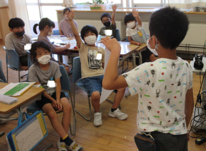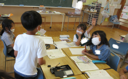 国語科では、ドラえもんの道具のような、あったらいいなと思うものを考え、発表しました。「遠くまで届く虫網」「ほしい物が生まれる卵」など、面白いものがたくさんありました。発表した後は、たくさん質問をしました。