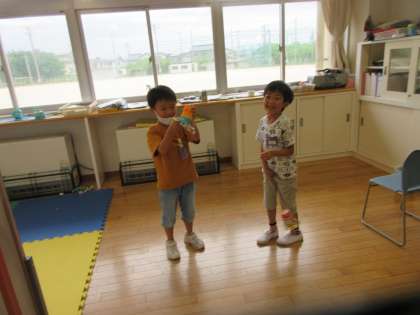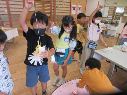 集会の続き、後半の部です。みんな、どうやって作ったの?どんなふうに遊ぶの?とお兄さん、お姉さんに聞いてたくさん教えてもらいました。