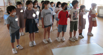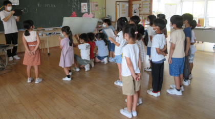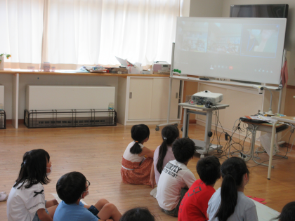今日は、「水橋西部小学校」と「水橋東部小学校」の低学年でリモートで交流しました。他の学校の子供を見ると、手を振ったり、友達を見付けたりして、とても嬉しそうでした。2年花組の自己紹介も上手にできました。これからもっともっと仲よくなってほしいです。