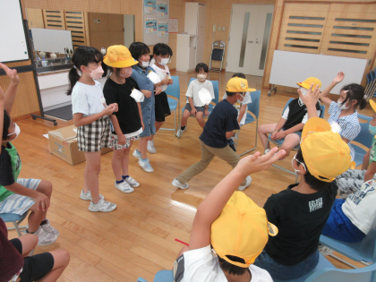 2年生のお楽しみ会の様子です。子供たちは、友達を楽しませようと、今日までレクリエーションの道具を作ったり、遊び方の説明を練習したりしました。いす取りゲームやジェスチャーゲーム、的当てなどをして、とても楽しかったです。