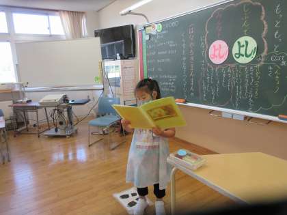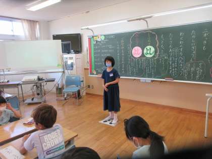 夏休みにがんばったこと、心に残ったこと、作った作品や自由研究など、自分でテーマを選んで、全員が発表しました。実物を見せたり、身振りや手振り、言葉で伝えたりしました。いい体験をたくさんして、心も体も成長しました。