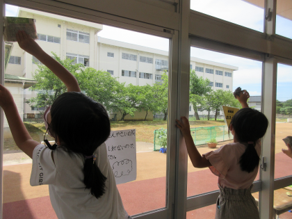 今日は思い出発表会のほかにも、2学期最初の掃除もしました。自分たちで汚れ照いる場所や見えにくい場所も進んで掃除しました。掃除が終わった場所はとてもピカピカになっていました。