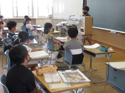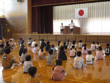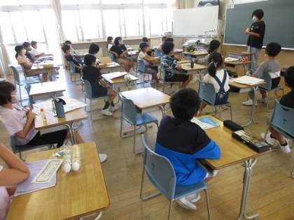 始業式の後、夏休みにがんばってやってきた「一人一研究」について発表しました。興味深い実験、細かい観察やたくさん調べてある研究、すてきな工作。個性と努力にあふれたものでいっぱいでした。休み時間にはお互いの作品を楽しそうに見合っています。