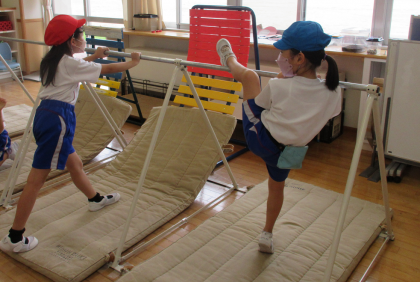 今日は、室内に設置した鉄棒を使って運動をしました。久々の鉄棒に子供たちはおおはりきりで取り組んでいました。「初めて逆上がりができた」といった喜びの声も聞こえてきました。どんどん得意技を増やしていってほしいです。