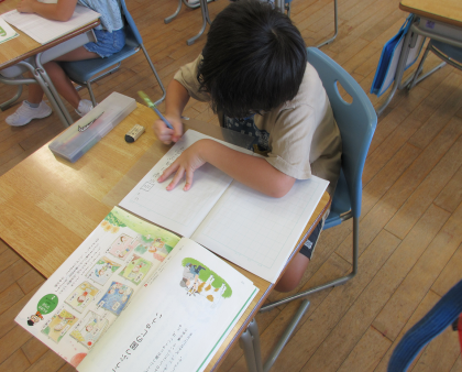 国語科では、一週間の出来事について、漢字を使って文章をつくりました。習った漢字を思い出しながら、いろいろな文章を作っていました。