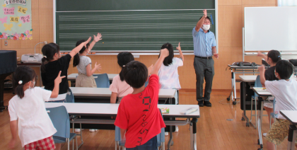 音楽科の授業では、音楽遊びをしました。子供たちは元気に、楽しく活動しました。