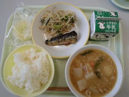 今日の献立は、ご飯・牛乳・いわしの土佐煮・ごま和え・豚肉とじゃがいもの南蛮煮・冷凍パインです。