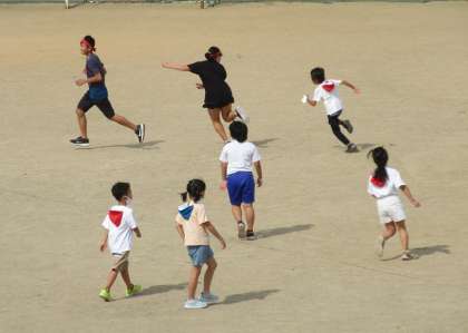 今日は、2学期初めての1〜6年生のファミリー班による交流活動がありました。みんな、それぞれのファミリー班に分かれて、上級生とともに遊びました。振り返りでは、「がんばれ!」「大丈夫?」と優しく声をかけてもらったり、ボールをまわしてもらったり、1年生に合わせて加減にてくれたりしたことに「ありがとう」と感じていました。また、「あんな上級生になりたいな」という気持ちを高めていました。