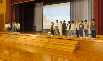 校内発表会(2年生) 公開日 2022/10/12 更新日 2022/10/12 活動の様子 今日は校内発表会がありました。子供たちは全校に生活科で調べた「町のすてき」を伝えました。学習発表会の日もがんばります!