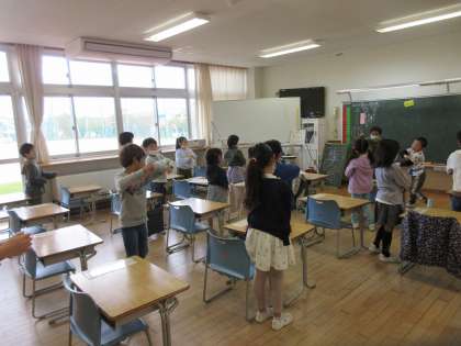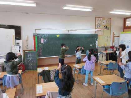 昨日の校内発表会で俄然やる気がアップし、今日の朝の会では「おむすびころりん」のみんなで動くところを練習したいと提案がありました。自分たちの発表を、自分たちで練習しようという意気込み、すばらしいです!