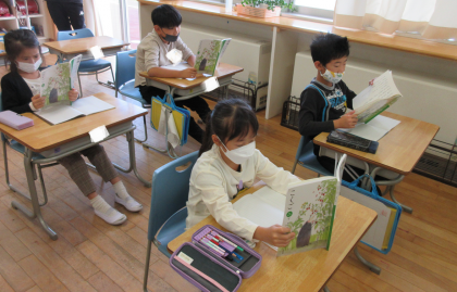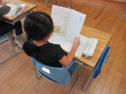 国語科では「お手紙」の学習に入りました。物語を読んで、登場人物や内容をたしかめました。この物語のおもしろさを感じてほしいです。