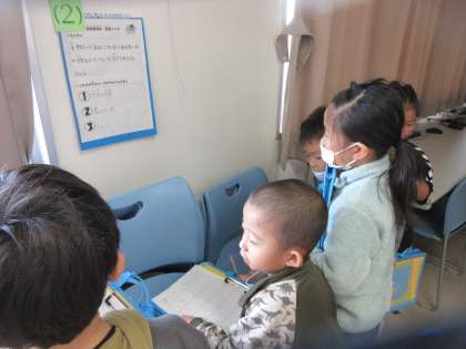 図書委員会主催の「図書クイズラリー」が行われ、今日は低学年の日でした。みんな、休み時間に図書室に行き、本に関するクイズを一生懸命解いていました。
