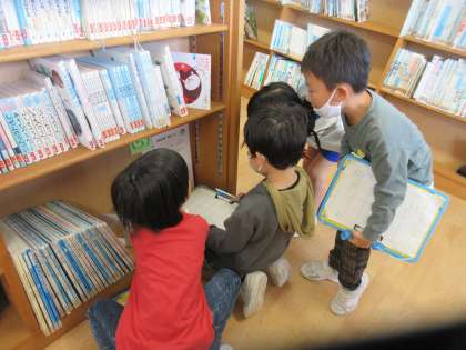 図書委員会主催の「図書クイズラリー」が行われ、今日は低学年の日でした。みんな、休み時間に図書室に行き、本に関するクイズを一生懸命解いていました。