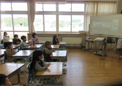 11月8日に、滑川スポーツの森公園で行われる「3校合同交流会」に向けての、1・2年生のリモート交流会が行われました。8日に行う各校が企画するゲームのお知らせをしました。1花は、「グループじゃんけん」をするので、その旨を伝えました。