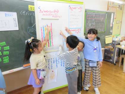 今、1花やるきまんまんクラスになるために、さらにがんばっている取り組みの一つに黙食があります。みんなでお試しをしたり、話し合ったりして、がんばりシールを貼ることになり1週間。ついに、お休みの子を除いて「もくしょくよし!」になりました。みんなバンザイをして大喜びです。