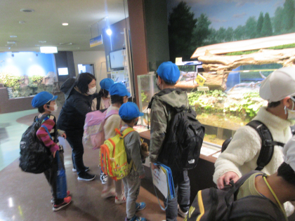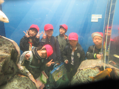 今日は1年生と2年生の校外学習でした。水族館では、魚の観察をして生き物の学習をしました。2年生はお兄さんお姉さんとして、1年生の手を引いてあげる姿もありました。
