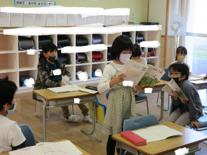 算数科ではかけ算をしています。今日は5の段を練習しました。友達と読み合ったり、みんなの前で発表したり、繰り返し練習しています。