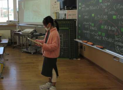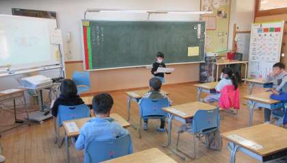 朝の会で日直がスピーチを行う「聴くよし!タイム」は、昨日から新しいテーマになりました。国語科の「しらせたいな、見せたいな」の学習でかいた絵と作文を発表しています。自分の興味のある生き物などを調べ、絵に描いて説明の文を書きました。絵を書画カメラで見せながら、紹介しています。みんな興味津々でした。