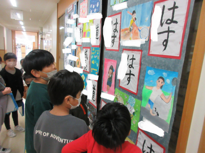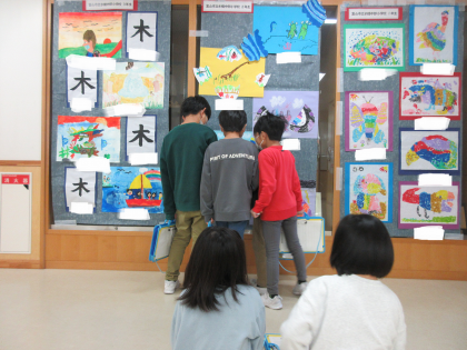 今日は、いろいろな学年の作品を鑑賞しました。子供たちはみんなの作品を見て、「上手だね」「この絵すきだな」など話していました。