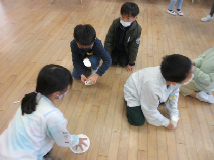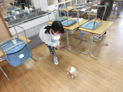 生活科では、教科書に載っているおもちゃで実際に遊んでみました。「どうやって動いてるの」「どんな材料を使っているのかな」と考えていました。今度は実際に自分たちでおもちゃを作ってみます。
